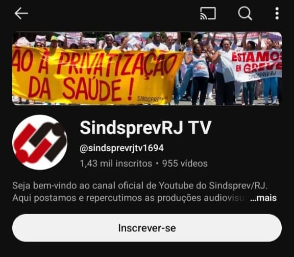 Conta de Youtube do Sindsprev-RJ é hackeada