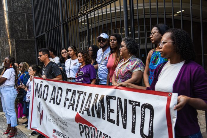 Durante a reunião, os servidores protestaram em frente ao prédio do DGH (rua México, 128) contra os descontos irregulares.