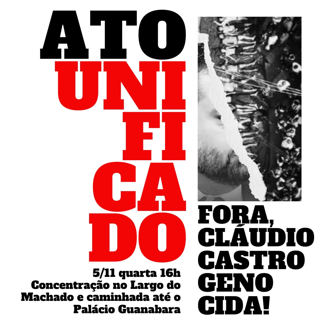 Representantes de entidades de defesa dos direitos humanos, servidores públicos estaduais, sindicatos, centrais sindicais, parlamentares e partidos como PT, PSOL e PCdoB realizam hoje (5/11) um grande ato unificado para repudiar a política genocida do governador Claudio Castro (PL). A concentração será a partir das 16h, no Largo do Machado, de onde os manifestantes seguirão em passeata até o Palácio Guanabara (rua Pinheiro Machado).