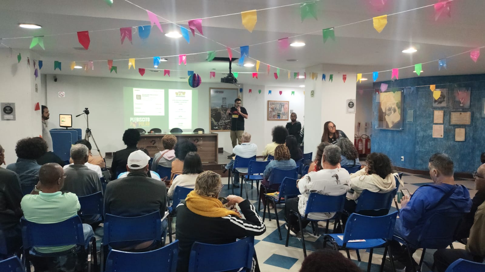 Foi realizada na noite desta quarta-feira (30/7), no auditório do Sindsprev-RJ, a II Plenária Estadual Organizativa do Plebiscito Popular que desde o dia 1º de julho está consultando os(as) brasileiros(as) sobre os seguintes temas: fim da escala de trabalho 6 X 1; isenção de Imposto de Renda para quem ganha até R$ 5 mil mensais; taxação de grandes fortunas; e definição dos serviços de água e saneamento como direitos, e não como mercadorias. A consulta tem por objetivo pressionar o Congresso Nacional a aprovar projetos relacionados aos temas do plebiscito.