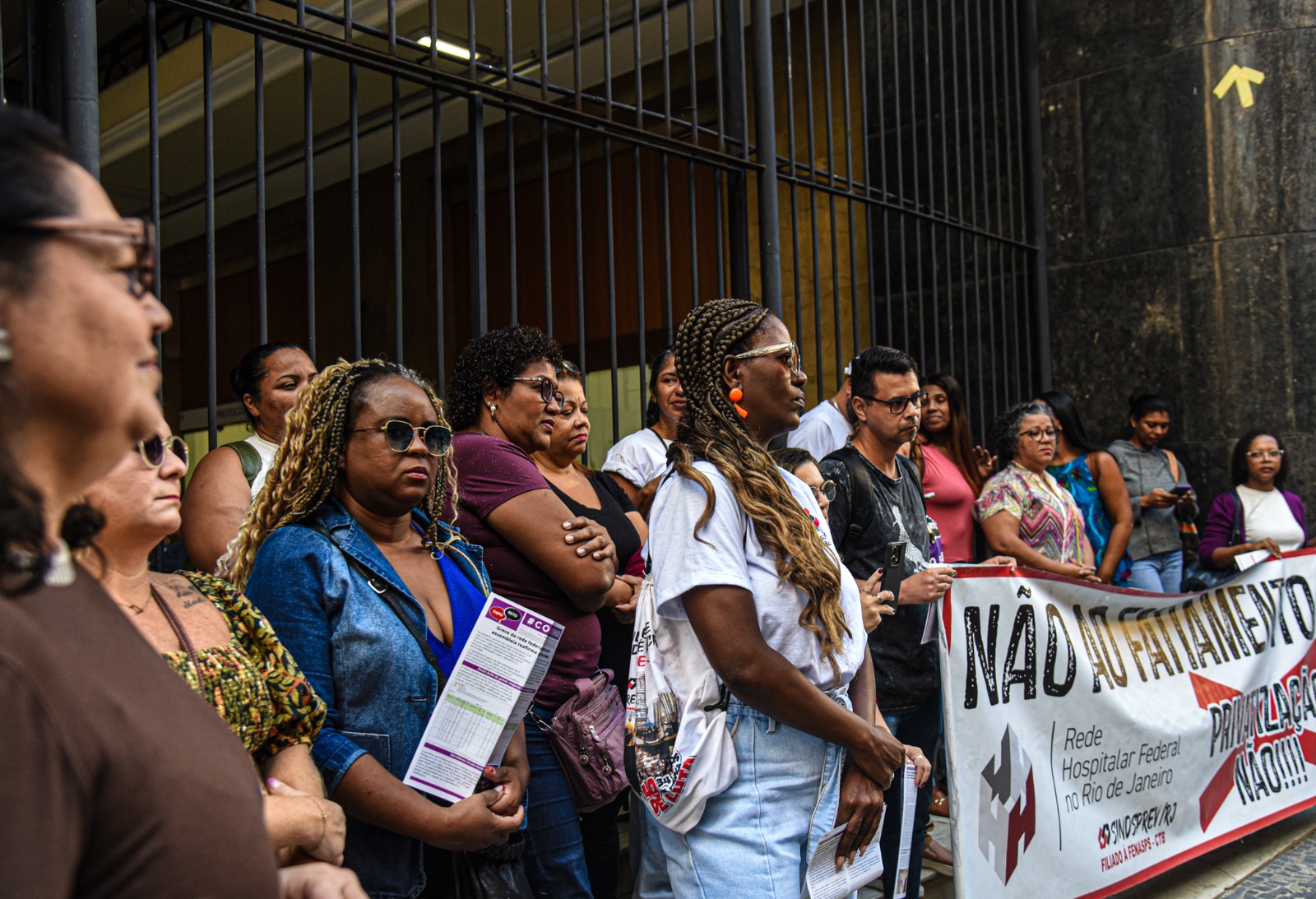 “Precisamos fazer uma reflexão sobre o que está acontecendo com nossos companheiros. Estamos aqui para legitimar a luta da base, e não achar que apenas o Sindsprev-RJ precisa estar aqui. É surpreendente que os descontos indevidos não estejam trazendo mais companheiros para protestar na rua. Eu não tive descontos em meu pagamento, mas a indignação me fez estar hoje aqui”, afirmou Cristiane dos Santos, dirigente do Sindsprev/RJ e servidora do Hospital Federal do Andaraí (HFA).
