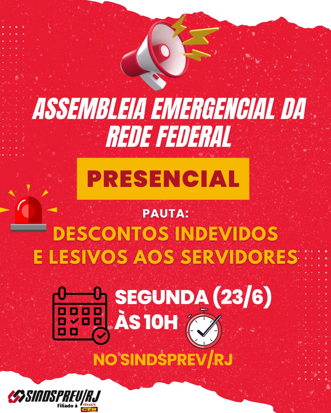 Todos à assembleia emergencial de segunda (23/6), no Sindsprev-RJ