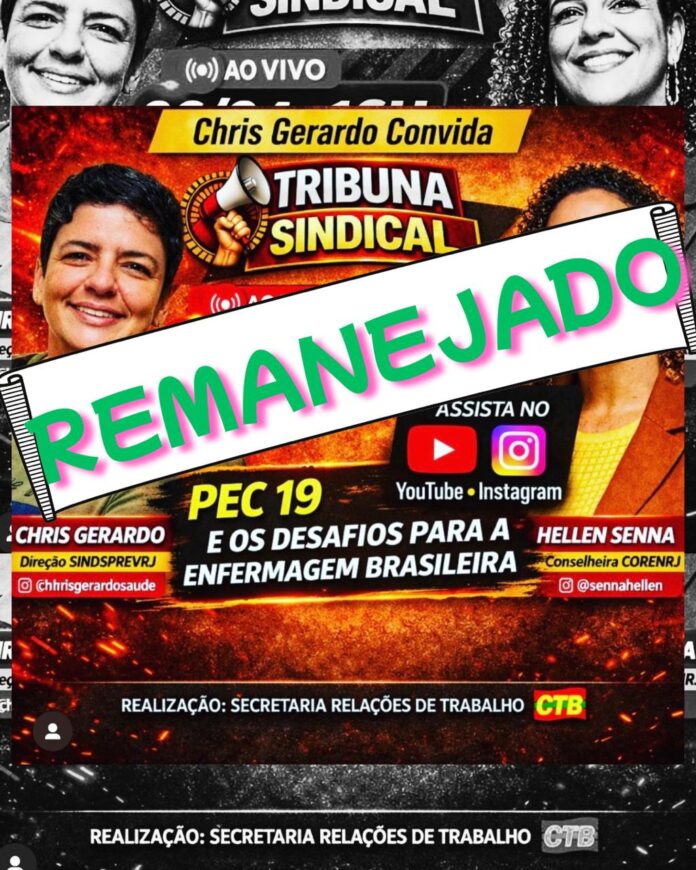 O podcast que seria realizado hoje com a diretora do Sindsprev/RJ e da CTB Christiane Gerardo junto com Hellen Senna, conselheira do Coren/RJ, precisou ser adiado. Em breve divulgaremos a nova data do programa.