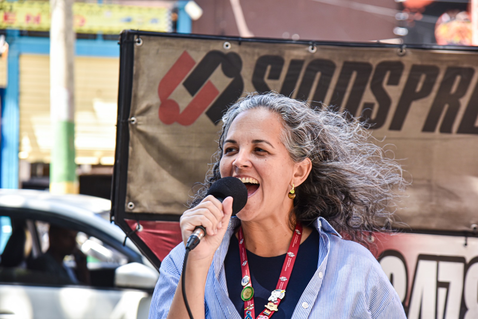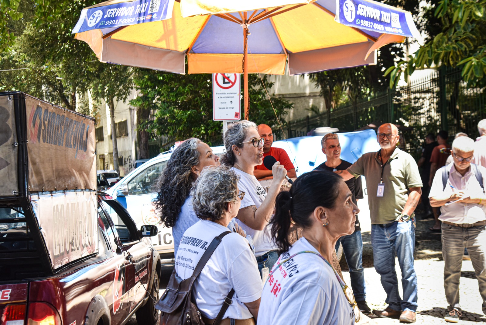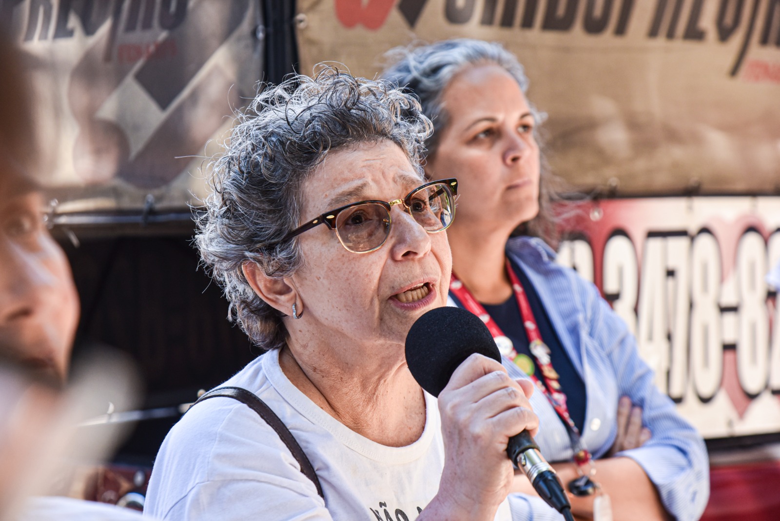 Pacientes ficam indignados – Muitos pacientes paravam para ouvir as denúncias feita pelos dirigentes no carro de som do Sindicato. E ficavam revoltados. “Não pode ser verdade! É o melhor hospital que conheço! Me trato aqui desde 2022, na clínica médica e fiz cirurgia para retirar um tumor no intestino. Venho a consultas de avaliação sempre. Como vai ser agora se o hospital fechar?”, indagou Rosa Veiga.