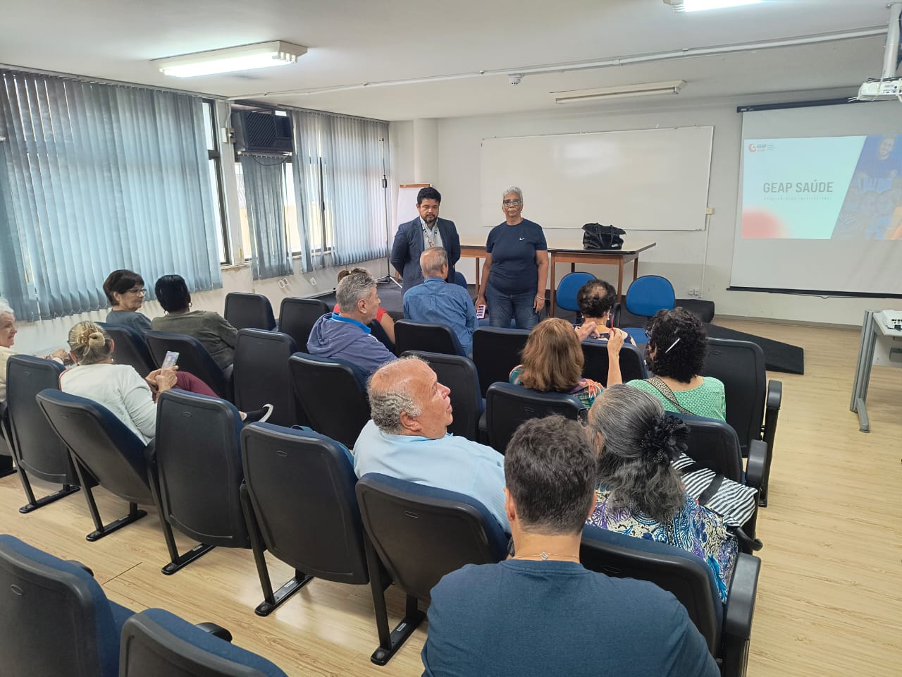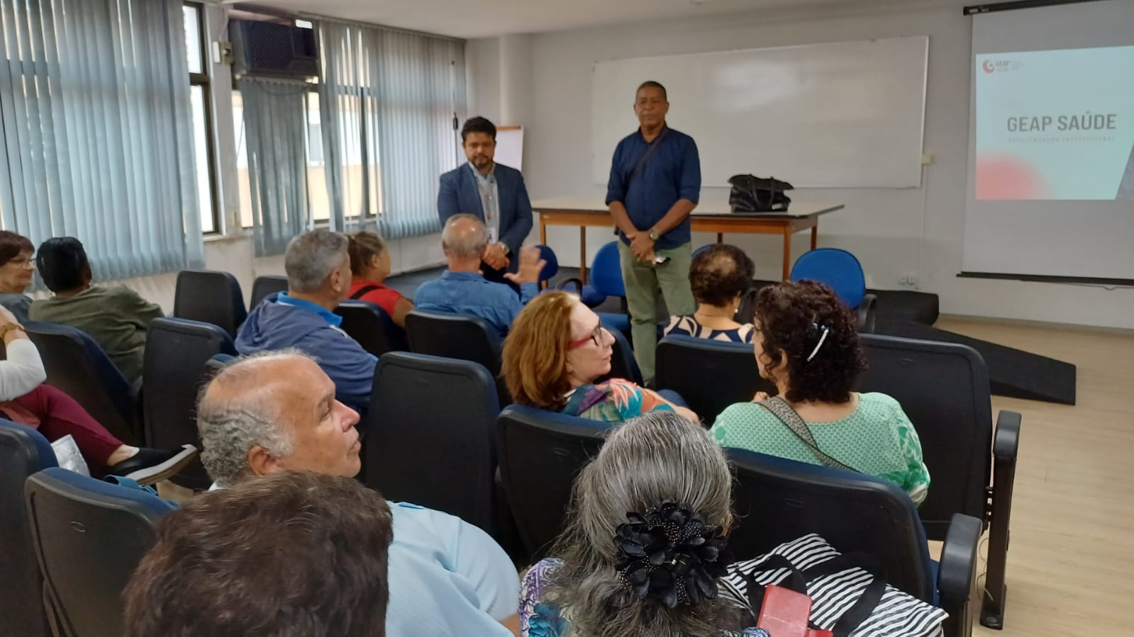 Representantes da Geap reuniram-se com servidores da saúde federal e do INSS, na última quinta-feira (22/1), para explicar e tirar dúvidas dos segurados. A reunião aconteceu na sede da Gerência Executiva do INSS (rua Dr. Bormann, nº 6) e foi realizada em moldes semelhantes à que a Secretaria de Aposentados e Terceira Idade do Sindsprev-RJ promoveu em outubro do ano passado, na sede do sindicato, quando então os servidores também tiraram dúvidas sobre assuntos relacionados à Geap.