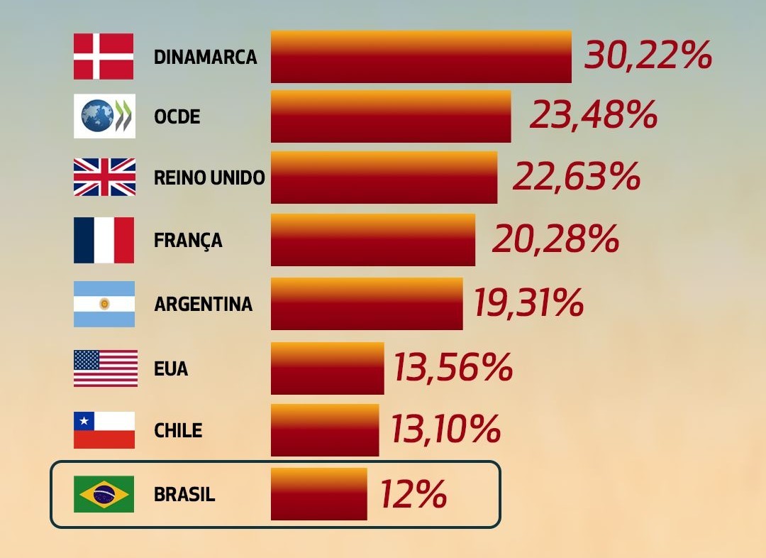 O Brasil, mesmo sendo um país continental, possui apenas 12% da força de trabalho nos serviços públicos das três esferas. Fonte : OCDE.