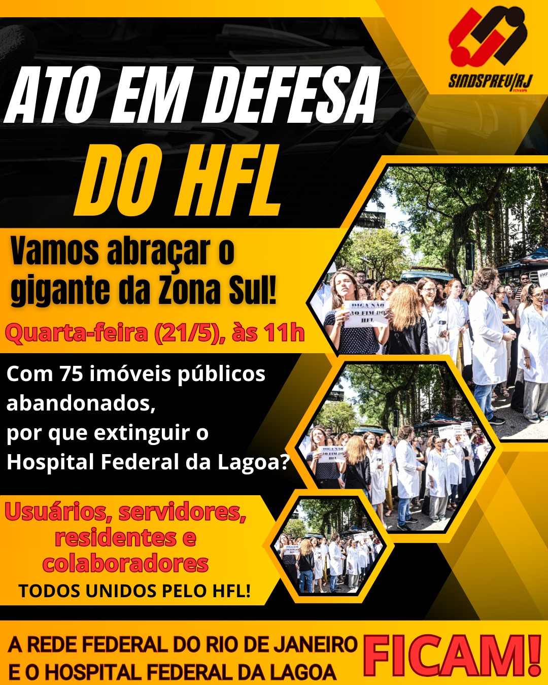 Sindsprev/RJ convoca servidores e população para ato em defesa do HFL, nesta quarta (21/5)