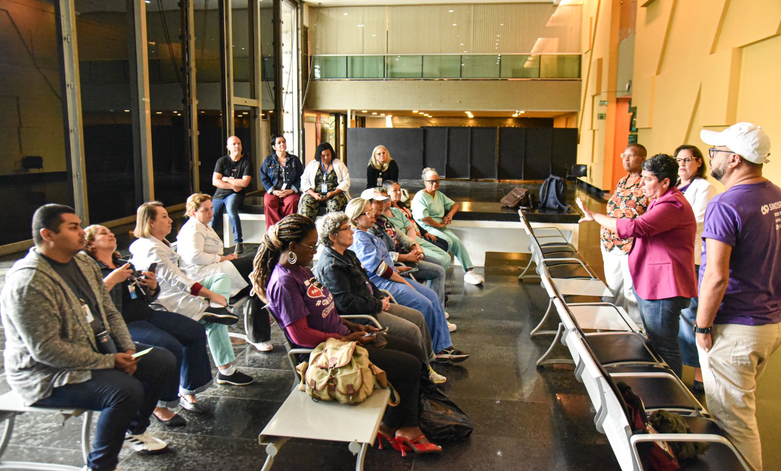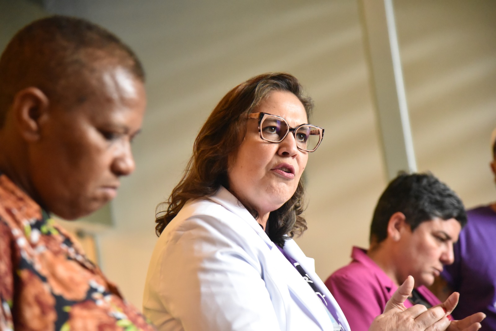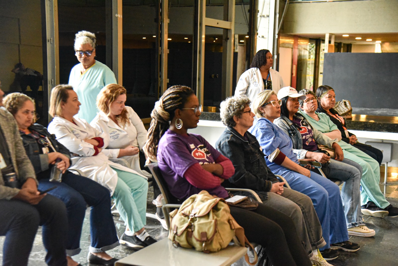 No detalhe, servidores atentos às explicações. Foto: Mayara Alves.