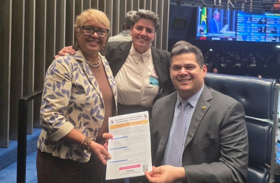 As diretoras do Sindsprev/RJ, Christiane Gerardo e Cristina Venetilho, deram, nesta terça-feira (2/12) um passo importante para agilizar a tramitação do projeto de lei que transfere os servidores da saúde federal para a carreira da Ciência e Tecnologia. Num encontro intermediado pela deputada Enfermeira Rejane (PCdoB-RJ), estiveram com o presidente do Senado, Davi Alcolumbre (União-AP), para tratar da proposta, que é de importância fundamental para a categoria.
